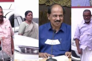 തിരുവനന്തപുരം: നെടുമങ്ങാട് ഉണ്ടായ വാഹനാപകടത്തിൽ മൂന്ന് പേർക്ക് ദാരുണാന്ത്യം. ഒരാൾക്ക് ഗുരുതര പരുക്കേറ്റു. ഉഴമലയ്ക്കൽ സ്വദേശികളായ ശ്രീലാൽ , ബിനോയ് , രാജേഷ് എന്നിവരാണ് മരിച്ചത്. ഇന്നലെ രാത്രി 10.45 ഓടെയാണ് ദാരുണമായ സംഭവം. നെടുമങ്ങാട് – ആര്യനാട് റോഡിൽ കുളപ്പട ഗവൺമെന്റ് ഹോസ്പിറ്റലിന് സമീപം അമിതവേഗതയിൽ സഞ്ചരിച്ച ബൈക്കുകൾ തമ്മിൽ കൂട്ടിയിടിച്ചാണ് അപകടമുണ്ടായത്. പരുക്കേറ്റയാളെ മെഡിക്കൽ കോളേജ് അശുപത്രിയിൽ പ്രവേശിപ്പിച്ചു. മരിച്ചവരിൽ ഒരാളായ ശ്രീലാൽ കാപ്പാ കേസിലെ പ്രതിയാണ്. അപകടത്തിൽ രണ്ടു ബൈക്കുകളും പൂർണമായും തകർന്നു….