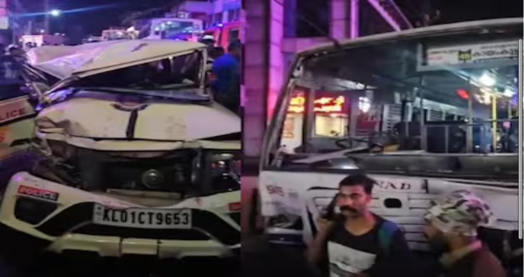 അടൂരിൽ പ്രതികളുമായി ജയിലിലേക്ക് പോയ പോലീസ് ജീപ്പിൽ KSRTC ബസ് ഇടിച്ച് ASI ഉൾപ്പെടെ 6 പേർക്ക് പരിക്ക്