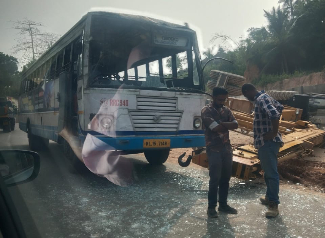നെടുമങ്ങാട് ഏണിക്കരയിൽ കെഎസ്ആർടിസി ബസും, ക്രെയിനും കൂട്ടിയിടിച്ച് അപകടം