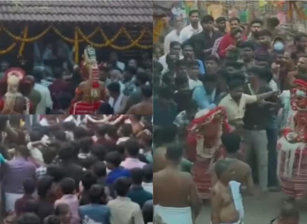പാനൂർ : കണ്ണൂർ പാനൂരിൽ തെയ്യം കെട്ടിനിടെ സംഘർഷം. ഇന്നലെ തെയ്യം ക്ഷേത്ര മുറ്റത്ത് ഇറങ്ങുന്നതിനിടെയാണ് സംഭവം. കൂടത്തിൽ മഠപ്പുരയിൽ പോതിത്തിറ നടക്കുന്നതിനിടെ തിരക്ക് നിയന്ത്രിക്കാനുള്ള നിർദ്ദേശം പാലിച്ചില്ലെന്ന് ആരോപിച്ച് വോളന്റിയർമാരും തെയ്യം കാണാനെത്തിയവരും തമ്മിലുണ്ടായ തർക്കമാണ് കൂട്ടത്തല്ലിൽ അവസാനിച്ചത്. പോതി തെയ്യം, തിരുവപ്പന, വെള്ളാട്ടം അടക്കമുള്ള തെയ്യങ്ങൾ ക്ഷേത്ര മുറ്റത്ത് ഉണ്ടായിരുന്നു. ചേരി തിരിഞ്ഞുള്ള തല്ലിനിടെ ആളുകൾ തിരുവപ്പന തെയ്യത്തെ പിടിച്ചുതള്ളി. തമ്മിലടിയിൽ നിന്ന് ഒഴിഞ്ഞ് പോകാൻ ശ്രമിക്കുന്ന തെയ്യം കലാകാരന്റെ വീഡിയോ ദൃശ്യങ്ങളും കൂട്ടത്തല്ലും സമൂഹമാധ്യമങ്ങളിൽ പ്രചരിച്ചിട്ടുണ്ട്. സംഭവത്തിൽ രാഷ്ട്രീയമില്ലെന്നാണ് പൊലീസ് വിശദമാക്കുന്നത്. എന്നാൽ കോൺഗ്രസ്, സിപിഎം അനുഭാവികളാണ് ചേരി തിരിഞ്ഞ് അടി കൂടിയതെന്നാണ് പ്രദേശവാസികൾ വിശദമാക്കുന്നത്. സംഭവത്തിൽ പരാതികൾ ഇല്ലാത്തതിനാൽ കേസെടുത്തിട്ടില്ലെന്ന് പാനൂർ പൊലീസ് വിശദമാക്കി. പാനൂർ വള്ള്യായിൽ ആണ് സംഭവം. വലിയ രീതിയിലുള്ള സംഘർഷമാണ് സംഭവത്തിലുണ്ടായത്.