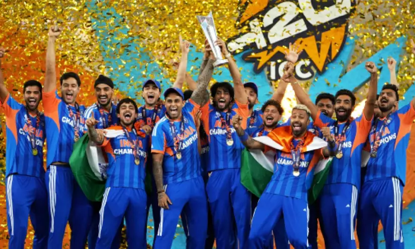 മുംബൈ: 2026ലെ ഐ.സി.സി ടി20 ലോകകപ്പിലെ ചരിത്ര വിജയത്തിന് പിന്നാലെ ഇന്ത്യൻ ക്രിക്കറ്റ് ടീമിന് ബി.സി.സി.ഐ 131 കോടി രൂപ പാരിതോഷികം പ്രഖ്യാപിച്ചു. അഹ്മദാബാദ് നരേന്ദ്ര മോദി സ്റ്റേഡിയത്തിൽ നടന്ന കലാശപ്പോരിൽ ന്യൂസിലൻഡിനെ 96 റൺസിന് വീഴിത്തിയായിരുന്നു ഇന്ത്യയുടെ കിരീടനേട്ടം.