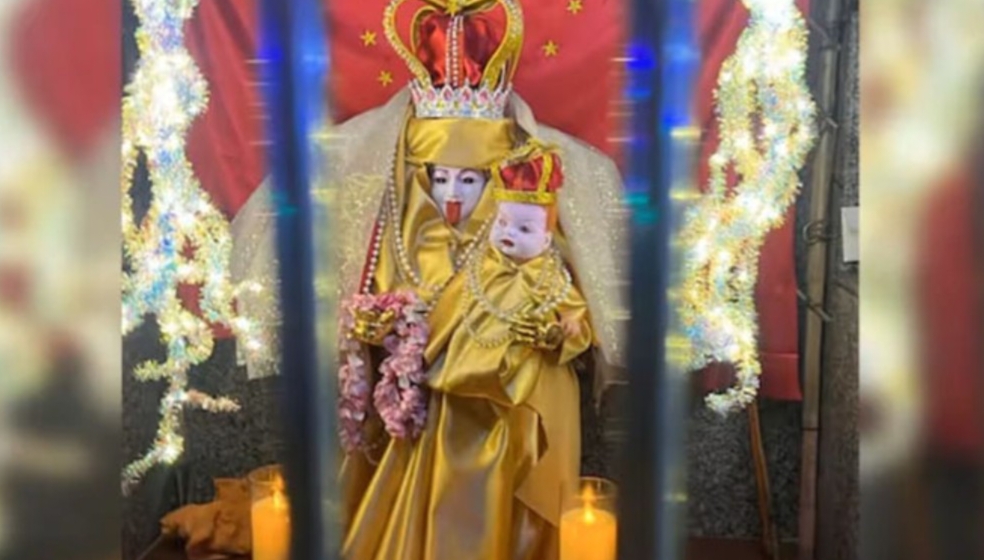 ശനിയാഴ്ചയാണ് സംഭവം പുറത്ത് വന്നത്. പതിവായി കറുപ്പോ കടുംനീലനിറത്തിലോ പ്രത്യക്ഷപ്പെടുന്ന കാളി വിഗ്രഹത്തിന് പൂജാരി വെള്ള പെയിന്റ് അടിക്കുകയും സ്വർണ്ണനിറത്തിലുള്ള വസ്ത്രം അണിയിക്കുകയും ചെയ്തിരുന്നു. ദേവിയുടെ തലയിൽ വലിയ വെള്ള അലങ്കാരങ്ങളോടു കൂടിയ കിരീടവും അതിന്റെ മുകളിൽ സ്വർണ്ണ കുരിശും സ്ഥാപിച്ചിരുന്നു.