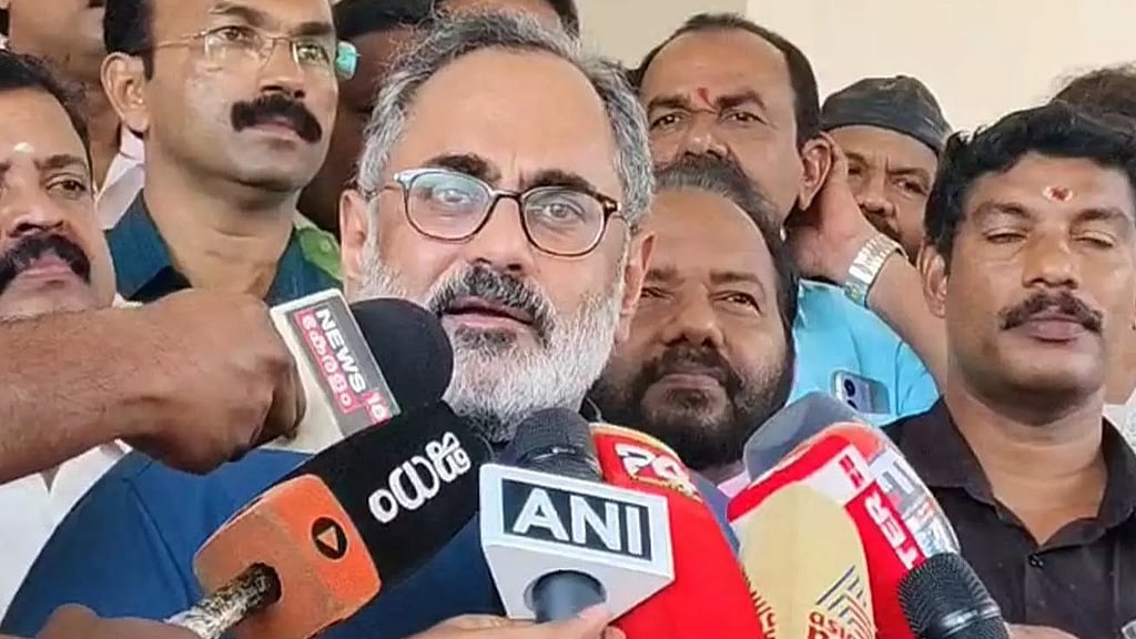 മാധ്യമപ്രവര്‍ത്തകരോട് ക്ഷോഭിച്ച് രാജീവ് ചന്ദ്രശേഖര്‍ ;നിങ്ങള്‍ ഏതു ചാനലാ ? മതി, അവിടെ ഇരുന്നാ മതി