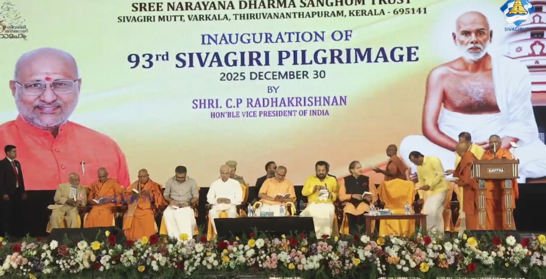 93-ാംമത് ശിവഗിരി തീർത്ഥാടനത്തിന് ഇന്ന് തുടക്കമായി. രാവിലെ 7.30ന് ശ്രീനാരായണ ധർമ്മസംഘം ട്രസ്റ്റ് പ്രസിഡന്റ് സ്വാമി സച്ചിദാനന്ദ ധർമ്മപതാക ഉയർത്തി. തീർത്ഥാടന സമ്മേളനം രാവിലെ പത്ത് മണിക്ക് ഉപരാഷ്ട്രപതി സി.പി രാധാകൃഷ്ണൻ ഉദ്ഘാടനം ചെയ്തു.