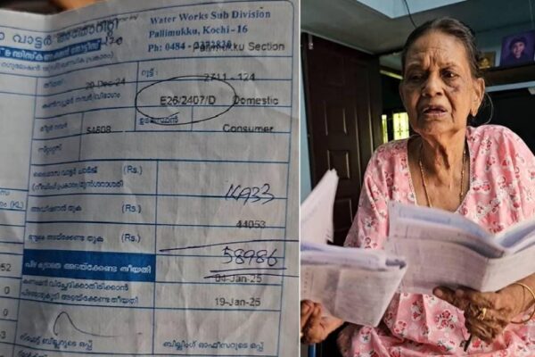 ആറ് മാസമായി പൂട്ടിക്കിടക്കുന്ന വീടിന് ലഭിച്ചത് 58,986 രൂപയുടെ വാട്ടർ ബില്ല്. 82 വയസ്സുള്ള, കോന്തുരുത്തി സ്വദേശി ഓമന കെ. രാജൻ എന്ന വയോധികയാണ് ഡിസംബറിൽ ലഭിച്ച ബില്ലുമായി ബുദ്ധിമുട്ടുന്നത്. പള്ളിമുക്ക് വാട്ടർ വർക്ക് സബ് ഡിവിഷന് കീഴിലാണ് ഭീമമായ ഈ ബില്ല് വന്നിരിക്കുന്നത്. 2024 ഒക്ടോബർ 30 ന് ലഭിച്ച 275 രൂപയുടെ ബില്ല് നവംബർ 14 അടച്ചിട്ടുണ്ട്. ഇതിന് ശേഷം 2024 ഡിസംബർ 26ന് നൽകിയ ബില്ലിലാണ് ഇത്രയും വലിയ തുക നൽകിയിരിക്കുന്നത്….